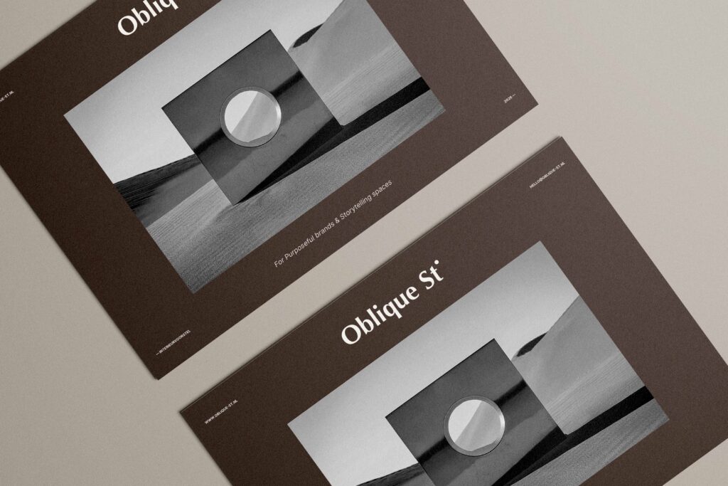 Bij Oblique St. staat design nooit los van inhoud. Elk project begint met begrijpen: wie je bent, wat je drijft en welk gevoel je wilt oproepen wanneer iemand jouw merk ontmoet of jouw ruimte binnenstapt.